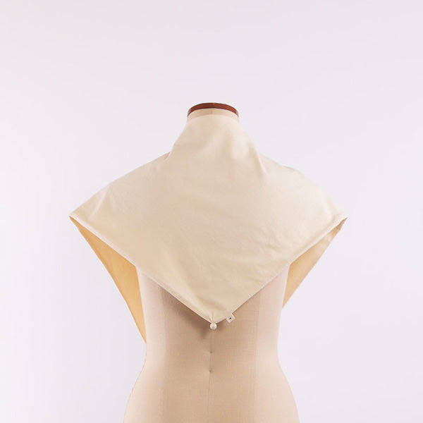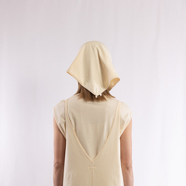 詳細        とても軽くて柔らかな風合いの素材を、通常よりも高密度(ハイゲージ)で編み立てることで、薄手でありながら透けにくく、美しい表情の素材です。No.250101、250102、250103とセットでお使いいただけるアイテムで、シンプルな装いのアクセントや、日よけとしても活躍します。また、3箇所の角には、冬物のニット帽を編む際に出たベビーアルパカの残糸を詰めて絞った、手仕事ならではの温かみのあるディテールを施しています。