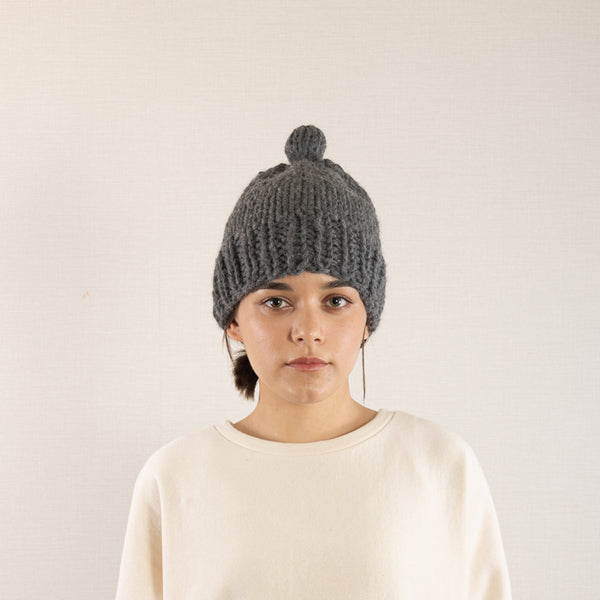 Detail This hand-knitted beanie is made from soft, lightweight, and warm baby alpaca yarn and features a cute pom-pom. It’s a Tsuyumi winter basics.